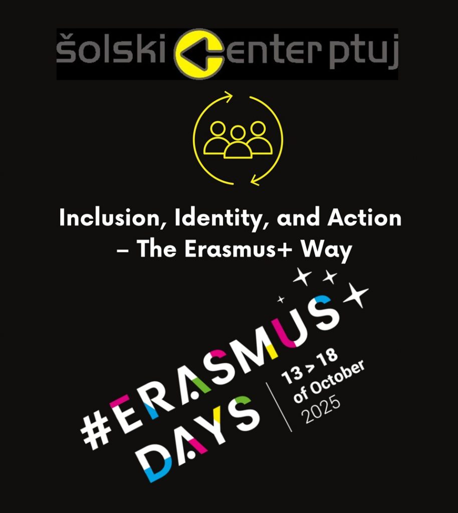 Tudi letos smo na ŠC Ptuj v dneh, med 14. in 19. oktobrom, ko v Evropi proslavljamo tako imenovane »Erasmus+ dneve«, pripravili različne aktivnosti, z namenom, da razširimo pridobljeno znanje in informacije na dijake, zaposlene ter tako izboljšamo kakovost svojega izobraževanja.