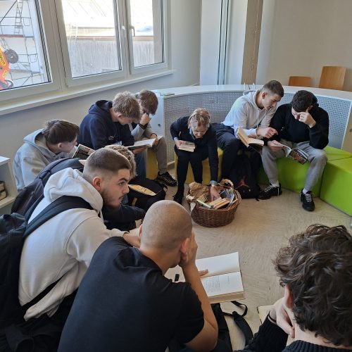 1. letniki ŠETK, smer tehnik oblikovanja, so spoznavanju evropskih avtorjev namenili celo šolsko uro. Najprej so si iz košare poiskali knjige, jih prelistali, nekaj prebrali in o prebranem zapisali pet povedi.