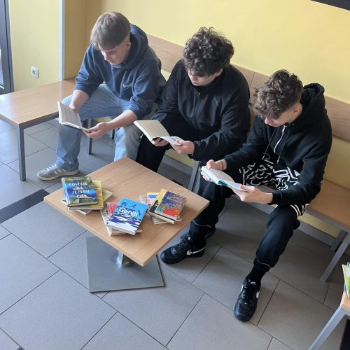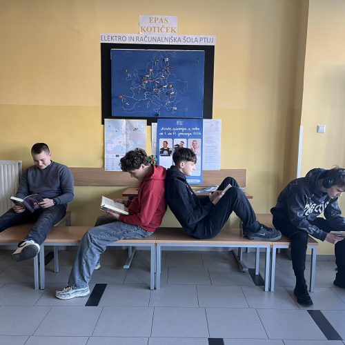 Tudi na Šolskem centru smo ta dan obeležili. Naša “knjižna košara” je obiskala delavnice na Strojni šoli. Med praktičnim delom so si dijaki in profesorji privoščili petnajst minutni odmor za sprostitev in spoznavanje raznolikih evropskih avtorjev.
