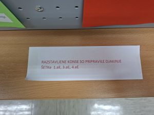 Spoznavali so knjižnico in knjige ter prisluhnili pravljici, ki jo je prebrala dijakinja ŠETK Stella Golčar. Z velikim zanimanjem so občudovali poučen ESA kotiček pred vhodom v knjižnico. Pobarvali so golobe miru in tako dopolnili razstavo o mednarodnem dnevu miru. Na koncu so se posladkali z odličnimi jabolčnim krhlji, ki jih je prispevala ŠETK.